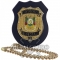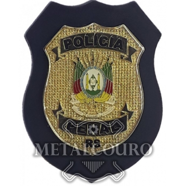 DISTINTIVO FUNCIONAL EM COURO COM BRASÃO EM METAL DA POLÍCIA JUDICIAL