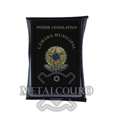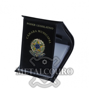 1- Carteira porta documento funcional em couro com brasão em metal e gravação CÂMARA MUNICIPAL: