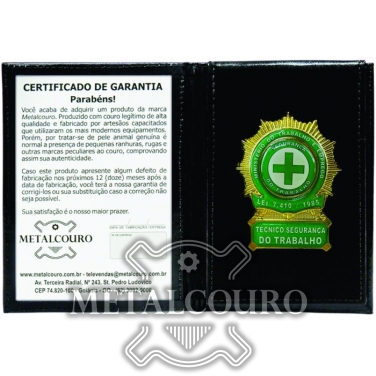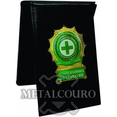 ✓ CARTEIRA EM COURO COM BRASÃO EM METAL DE TÉCNICO EM SEGURANÇA DO TRABALHO